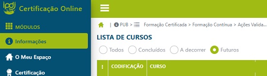 Como aceder ao agendamento dos próximos cursos/ações de formação